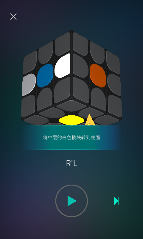 任意打乱状态自动识别并计算出三十步左右还原步骤,原创转动面引导,轻松跟走,零基础也能快速还原魔方。
