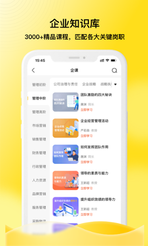 课程内容丰富多样,拥有海量精品的岗职、通用等课程,满足企业员工成长需求