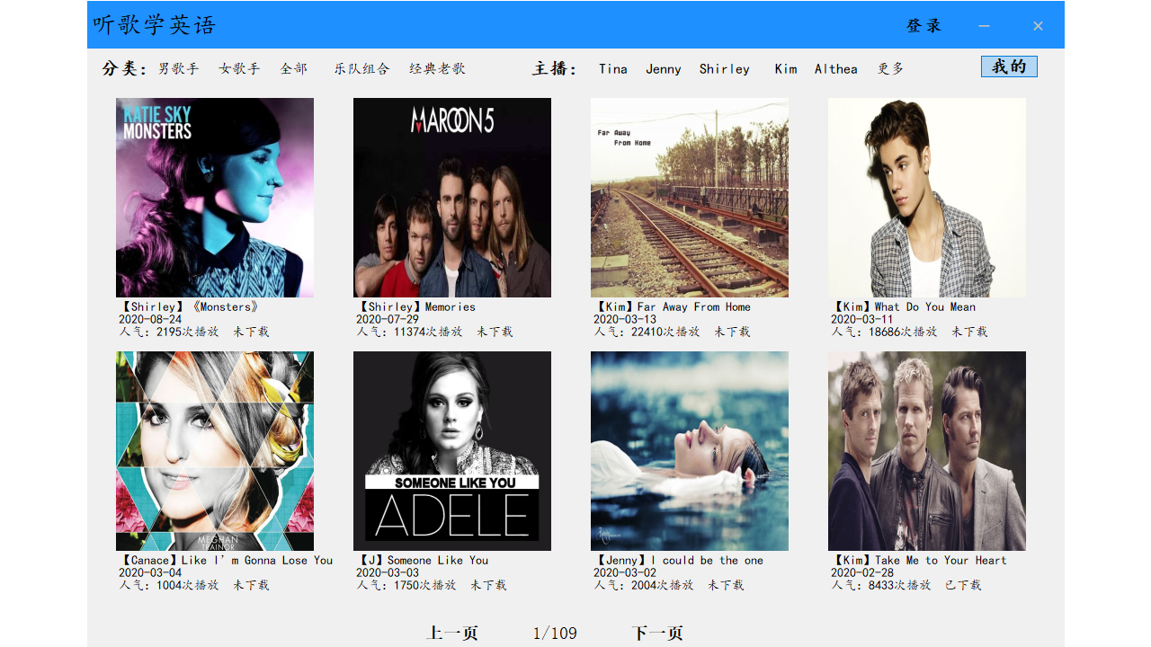 三、您可以在线听经典歌曲,同时可以将自己喜欢的歌曲下载到本地,方便您在无网络的环境里依旧可以享受优美的英文歌曲。
