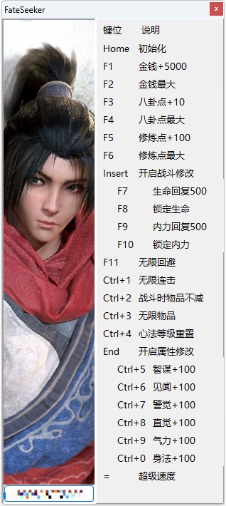 天命奇御多功能修改器是一款专门为同名热门武侠动作游戏《天命奇御》所精心打造的一款辅助修改软件,该辅助软件功能强大、实用下及其方便,不但具备金钱+5000等二十二种强大功能,攻能也及其的可观和强大,这让玩家更加方便使用,使游戏乐趣体验极好。(另外使用时尽量使用实用的功能,不建议全开,会降低游戏体验质量的)