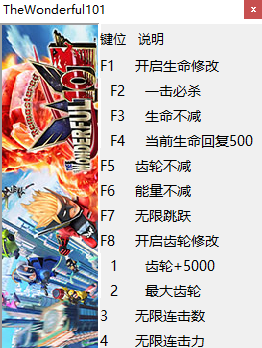 神奇101重制版修改器是一款专为动作游戏《神奇101重制版》所打造的多功能修改器,它具有生命修改、一击必杀、生命不减、齿轮不减、能量不减、无限跳跃、无限连击数、超级速度等十一项修改功能,可以减少游戏难度,给玩家带来更好的游戏体验。且修改器简单易用,玩家只需启动游戏、开启修改器即可进行修改!