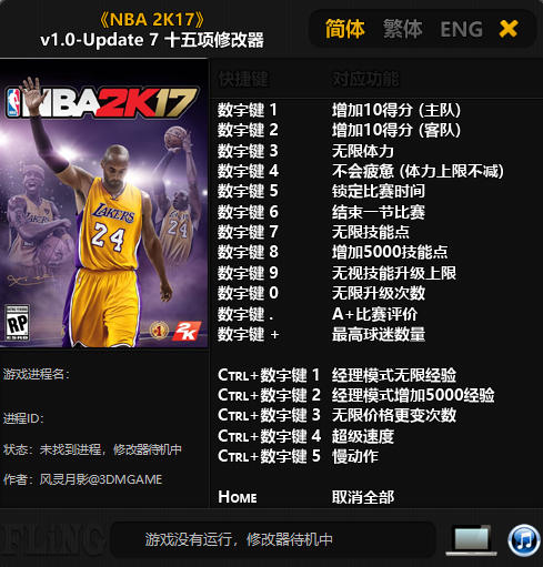 NBA2K17修改器是一款专为篮球竞技游戏《NBA2K17》所打造的多功能修改器,通过修改器玩家可修改包括无限体力、无限技能点、增加10得分等多项功能,助力你轻松畅玩游戏。并且,修改器简单易用,玩家只需启动游戏、开启修改器即可进行修改。