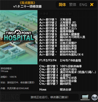 双点医院二十一项修改器是专门为双点医院这款游戏制作的一款修改器,这个修改器不但使用起来简单方便,功能也是非常的强大,能够帮助玩家轻松的修改游戏的内容,使用之后,带给你强大的修改效果,能够让玩家在游戏中有更好的体验,并且还能比其他玩家更胜一筹,还可以享受到游戏中的乐趣。《双点医院》是由之前开发过《主题医院》的原班团队“牛蛙”制作人组成的Two Point Interactive打造,并由世嘉发售的一款模拟经营类游戏。游戏的主旨是打造一流医院、治疗稀奇古怪的病症、管理各种棘手的医护人员,将一个简单的医疗机构规模扩大至整个双点县。设计医院、治疗患者、管理人员……《双点医院》是医院模拟游戏《主题医院》的精神续作,小编今天在这里为大家带来的是双点医院二十一修改器,需要的朋友们赶紧前来下载使用吧!
