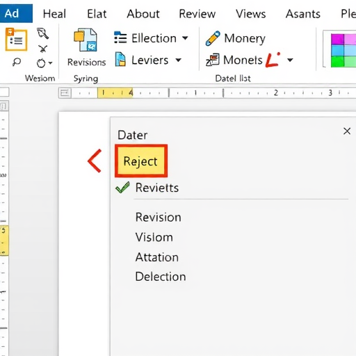 选择"审阅→更改"功能区,如图所示。鼠标移至"拒绝"图标