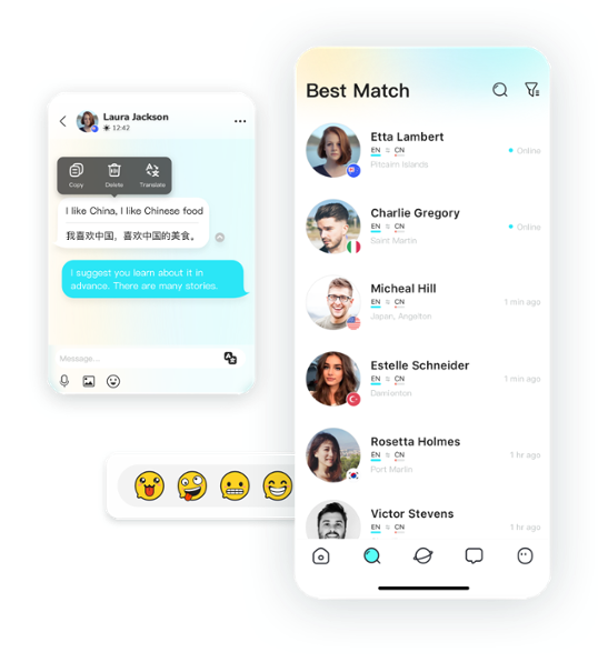 我们自研精准匹配算法,根据您的母语和学习兴趣语言精心筛选出适合您的语伴。这不仅促进了有效的语言学习,也为文化交流提供了丰富的土壤。