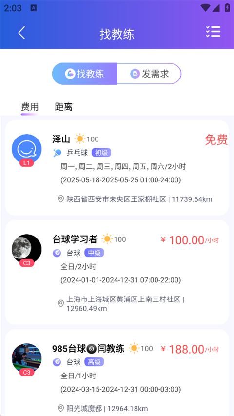 3、专业教练在线预约,提供技术指导、战术分析、体能训练等课程。