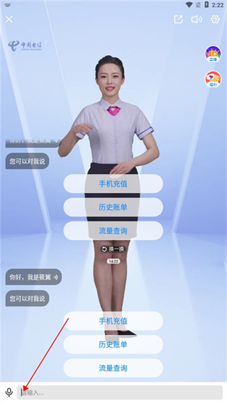 1、在本站下载安装并打开电信营业厅app,在首页找到虚拟营业员进入页面。