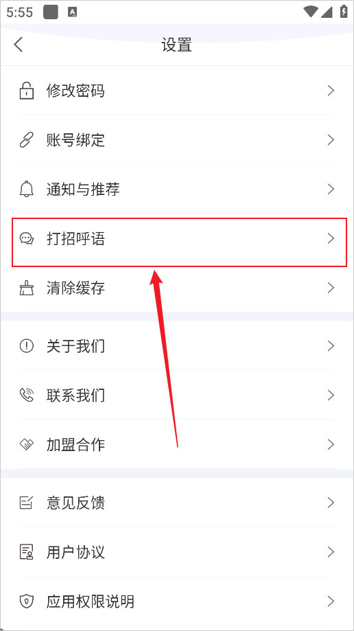 3、在设置界面往下滑找到打招呼