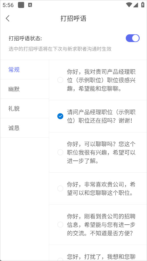 百城招聘App怎么设置打招呼语