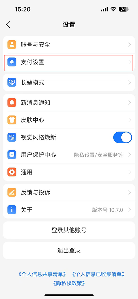 2、接着点击【支付设置】。