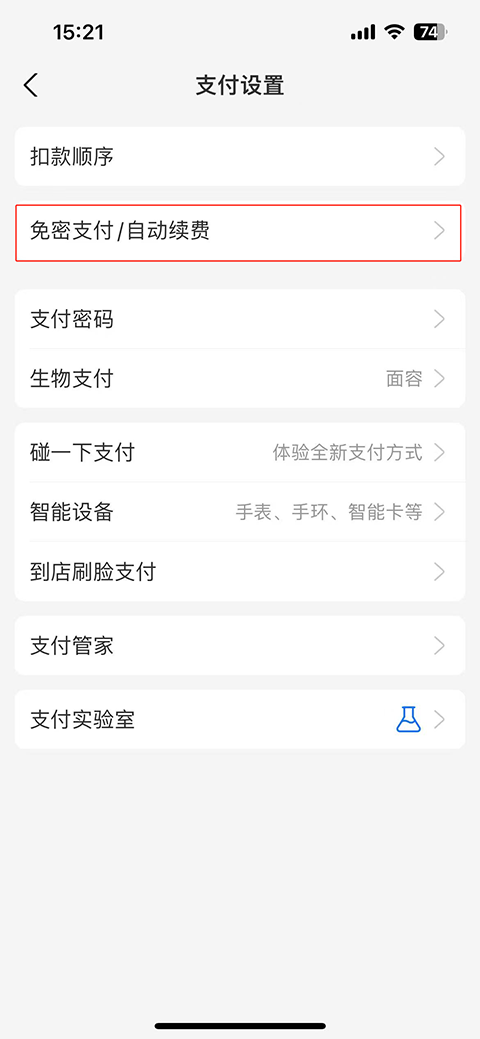 3、点击【免密支付/自动续费】。