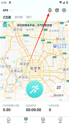 2、在运动页面右上角位置选择添加设备图标,进入设备连接流程。