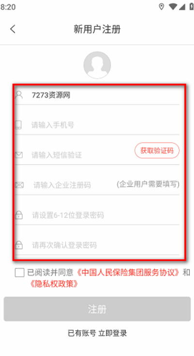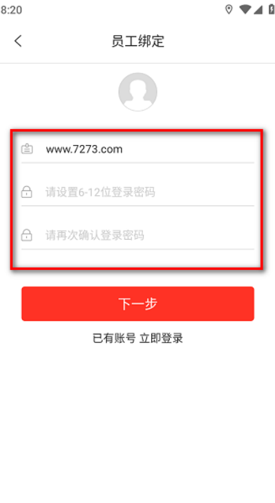 3、员工注册仅需输入工号或身份证号,并设置登录密码即可完成注册流程。