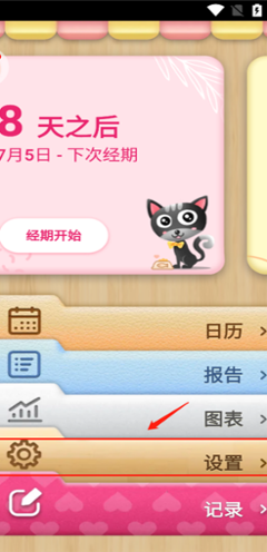 1、进入小月历应用后,在首页功能区域中找到并点击“设置”入口,进入系统与周期管理相关设置页面。