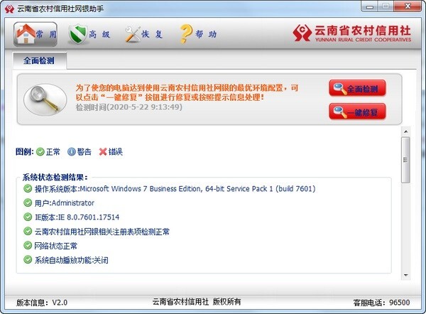 云南农村信用社银行网银助手简介 云南农村信用社银行网银助手是云南省农村信用社为网上银行用户打造的一款安全辅助工具。该助手提供了网银环境检测修复、控件及驱动程序一键安装等功能,能够全面检测并修复网银登录环境,优化系统设置,确保用户的网上银行交易安全,为用户使用网上银行提供有力保障。