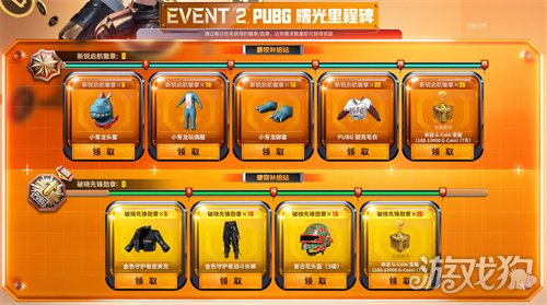 活动2:PUBG曙光里程碑,通过完成活动1累计“新锐启航徽章”和“破晓先锋勋章”,达到对应数量即可解锁补给站中的皮肤和G-Coin宝箱等道具,此次皮肤中有PUBG朋克毛衣和复古花头盔(3级),就这个头盔,可太带派了!