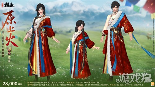 烈色裁云,赤纹映裳。同人嘉年华外装套装「原上火」尽显民族传统服饰特色。