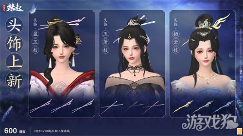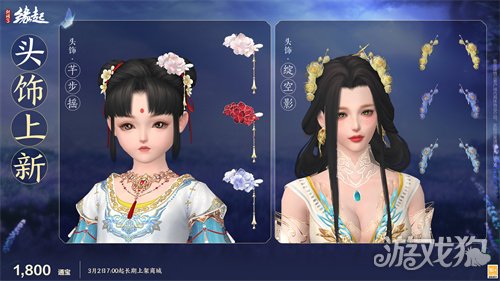 异花山、芊步摇、绽空影系列头饰单款1,800通宝,