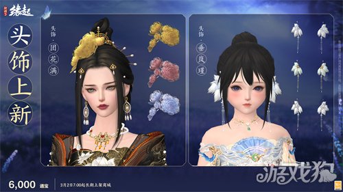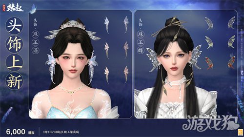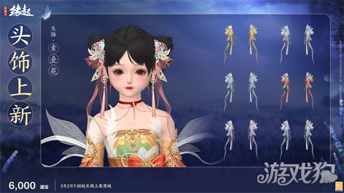 素叠花、团花满、垂岚瑾、珠玉谣、珠玉蝶系列头饰单款6,000通宝,