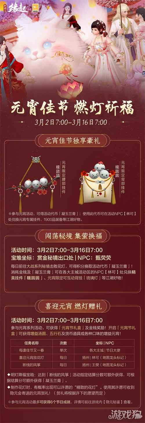 华灯长明,华裳已备,春意正浓。无论是元宵佳节的丰厚福利,还是春日上新的雅致新装,皆可为侠士的江湖旅途注入满满暖意与鲜活新意。愿诸位侠士身着新装,携礼而行,在上元灯火中与亲友共贺佳节,在大唐江湖里邂逅更多美好与奇遇。