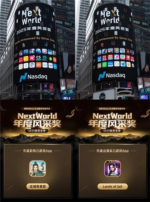 更具标志性的是,在七麦数据的助力下,益世界与多家知名品牌共同亮相全球瞩目的纽约时代广场纳斯达克大屏。素有“世界十字路口”之称的此地,是国际品牌实力的象征性展示窗口。此次亮相,是向全球市场传递中国游戏企业品牌形象与综合实力的一次有力发声。