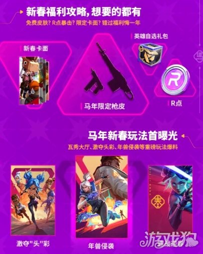 新英雄和新地图登场,还有大家关心的匹配排位机制即将优化!瓦秀大厅新形象,赛博新春玩法即将首次揭晓!更有马年福利攻略,免费枪皮、R点暴击、限定卡面,想要的就别错过了!