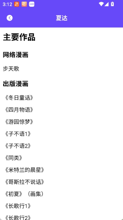 4、向下滑动页面还能看到“主要作品”等内容板块,其中会展示该作者出版或发布过的漫画作品列表,便于进一步了解创作内容。