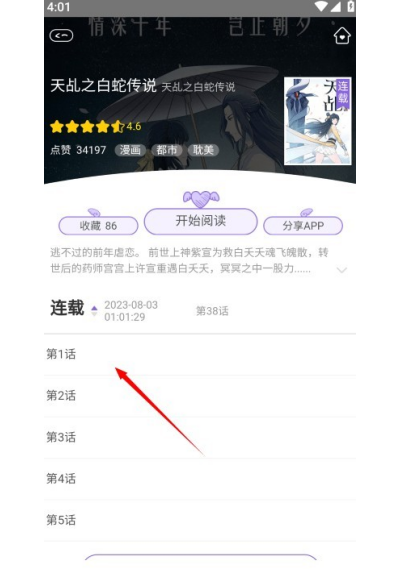 2、在详情页章节列表中,挑选想要观看的章节,点击“阅读”按钮,进入漫画阅读界面。